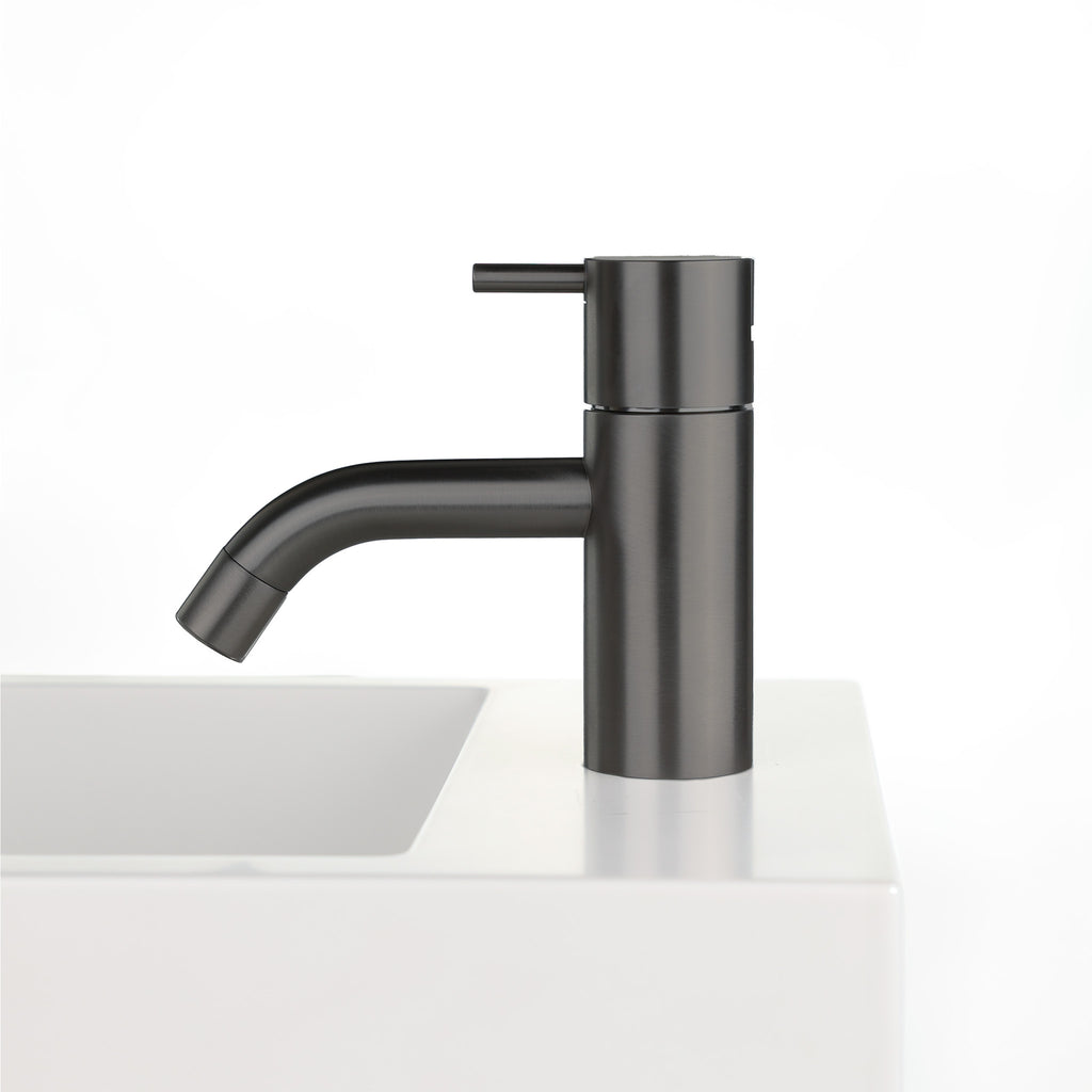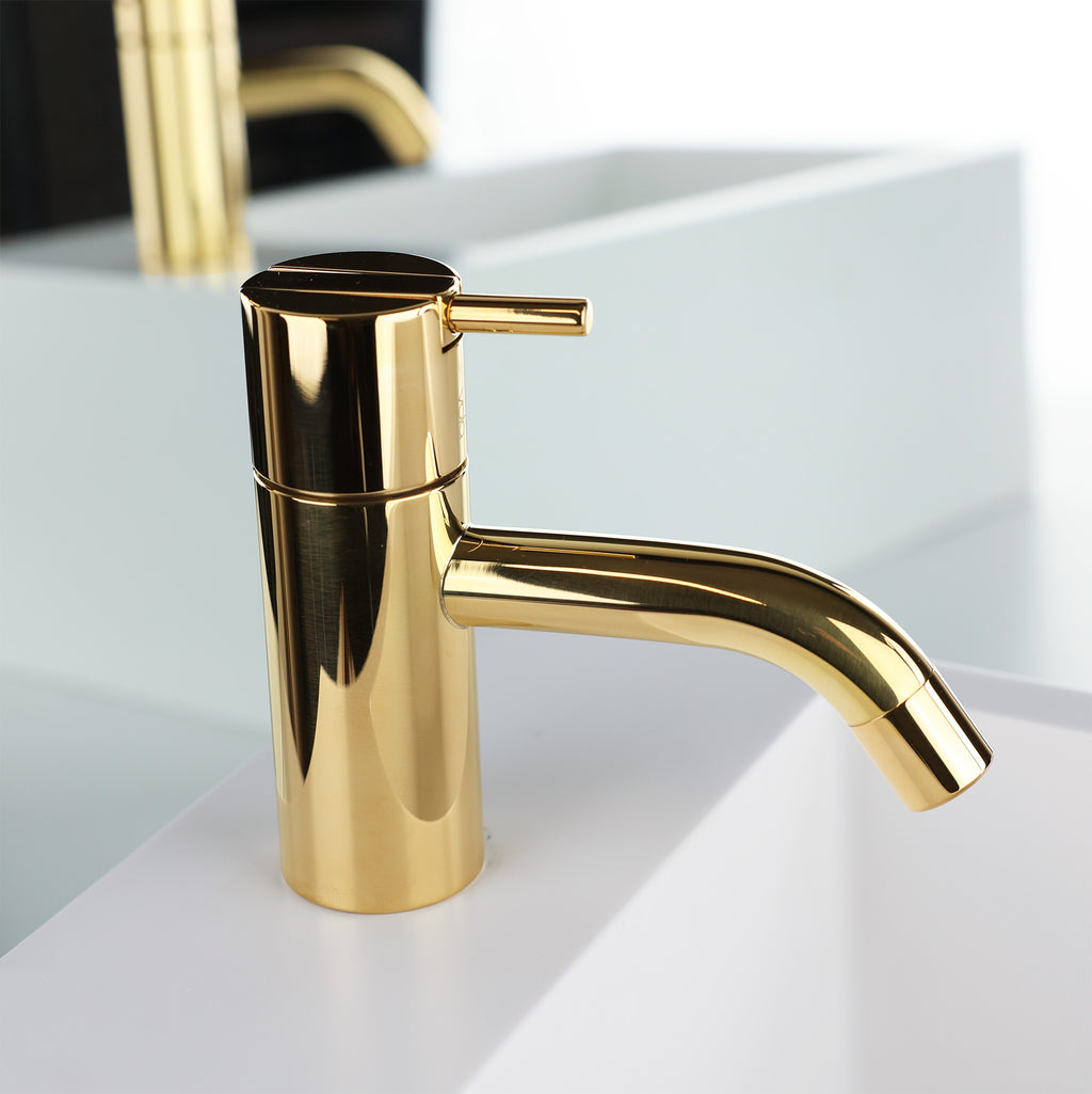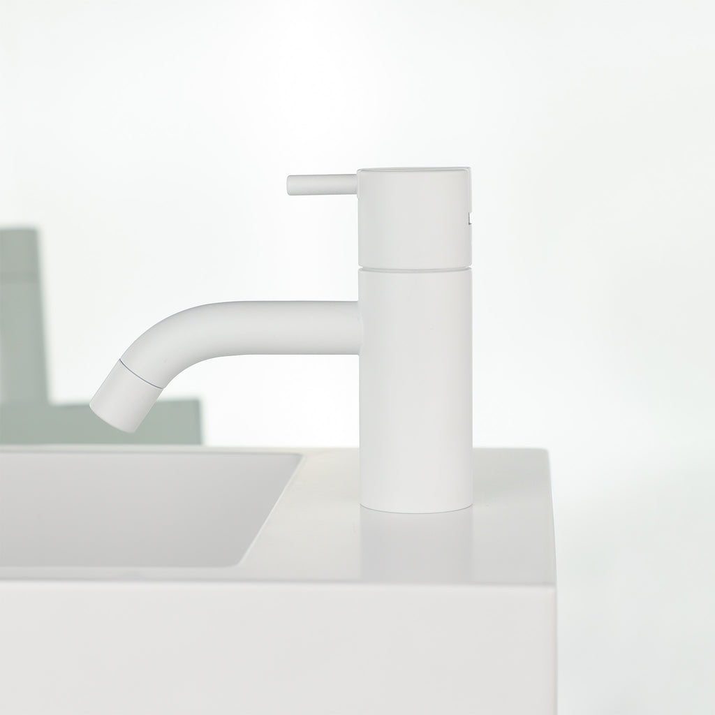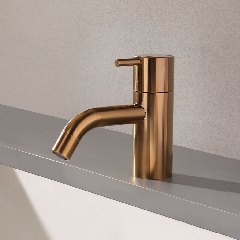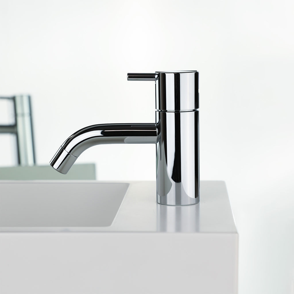 Its form follows a consistent geometric idea. The circle as a central design element stands for timelessness and continuity. The lever, rosette, and spout are perfectly coordinated and form a harmonious ratio that gives the faucet its exceptional calmness and balance.