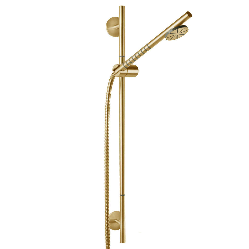 This high-quality shower set from Vola combines the elegant round-head hand shower T60 with the matching shower rail and a shower hose – for a harmonious overall appearance and maximum ease of use.