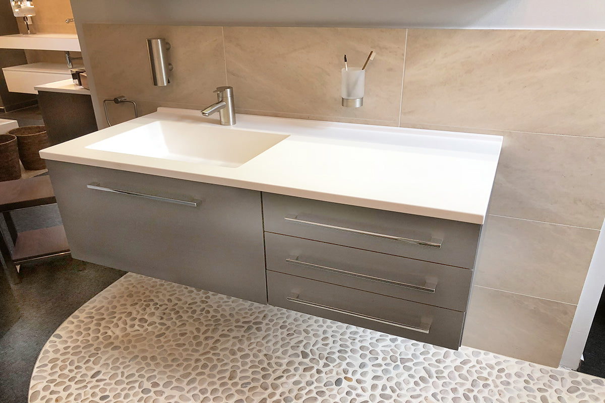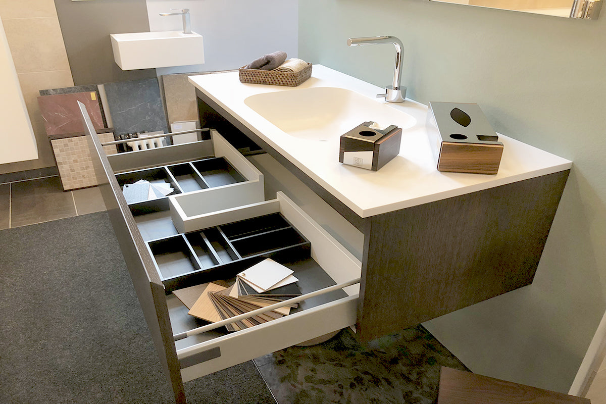 Mit ihrem Design, unterschiedlichsten Materialen und zahlreichen Oberflächen sowie einer Vielfalt an Farben und Griffen passen sich die Badmöbel in das Gesamtkonzept Ihres neuen Bades ein und prägen dieses ganz entscheidend.